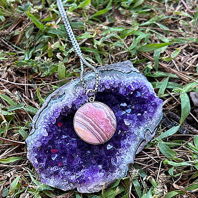Colgante de Rodocrosita en Plata de Ley 950 (redondo grande)